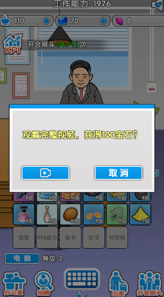 点击升职 图标 ,观看 视频 来提高升职等级限制