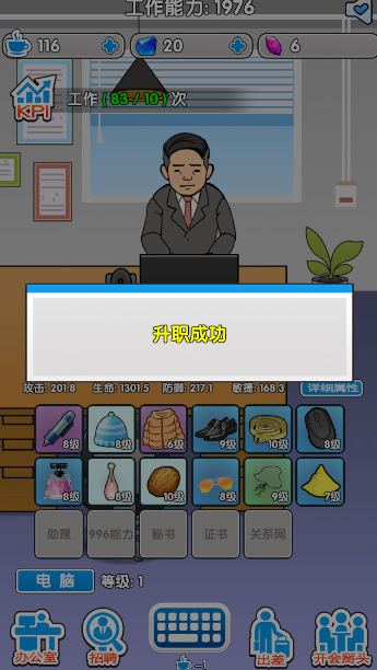 职场社畜模拟霸主,漫画风格的休闲小游戏。在游戏中,玩家扮演职场社畜,超额完成任务,加班达成KPI,参与酒桌谈判,处理各种订单,体验打工人的心酸历程。成为职场中的卷王,进行酒桌谈判,提高KPI完成度,享受大型社畜模拟体验,多种简单玩法和卡通画风等你来探索!