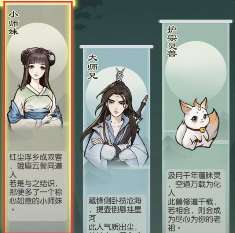 建议选择小师妹。红尘浮乡成双客,峨眉云鬓同道人,选择小师妹为引路人,便能与她相识,多一个称心如意的小师妹,谁又能拒绝一个可爱得小师妹陪自己开启之后的 剧情 呢;