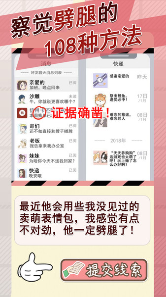 几十种不同的出轨情境,几百条令你意想不到的线索,场面十分劲爆,你敢劈腿,决不饶恕。