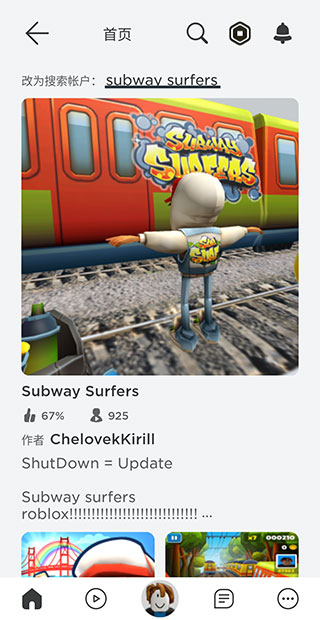 2、成功登录后,在游戏首页找到搜索框并点击,接着在搜索框中输入“subway surfers”进行搜索。