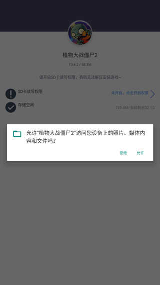 首先在本站下载安装包之后打开,允许“植物大战僵尸2”访问您设备上的照片、媒体内容和文件,开始解压安装游戏;