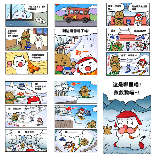 猫老大初次尝试滑雪,根本掌控不住速度,径直朝着悬崖冲了出去!