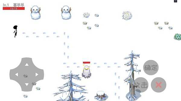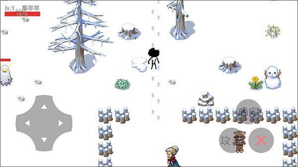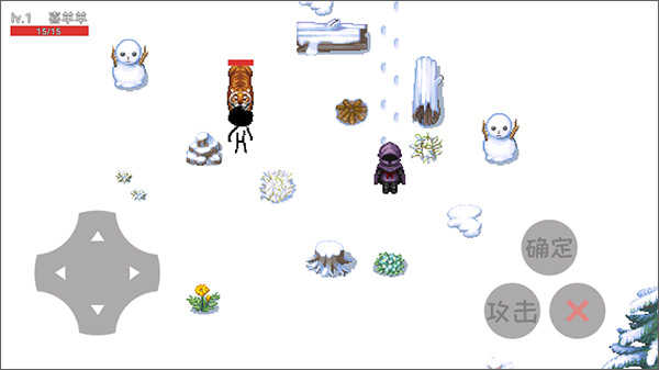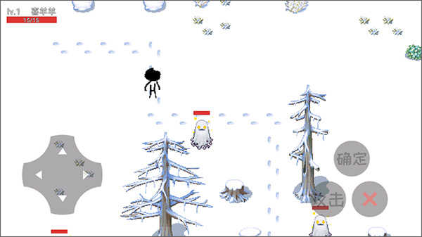 来到当前地图中,左侧虚拟摇杆控制移动,加上右侧的确定、攻击,还有“X”返回键,组合成了简单的操作,在图中你会发现带有红色血条的敌人,使用攻击按键进行操作,切记要及时躲避对手的攻击,因为生命只有一次。