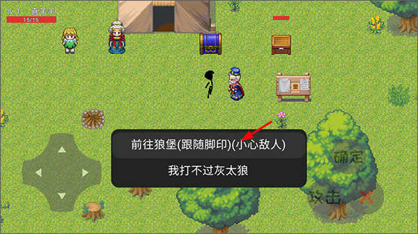 来到村长面前了解故事具体的背景,然后选择“前往狼堡(跟随脚印)(小心敌人)”
