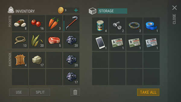 NPC:衣服、武器、工具、背包、身份卡、食物、资源