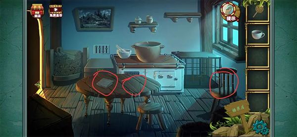 打开柜子获得红色的珠子 再回到厨房 用面包屑 木板和捕鼠器零件组成捕鼠器 放到碗柜下面的老鼠洞 放上去后退出去 再点进来会获得一个钥匙(我忘记截图了 只剩一个空的老鼠夹了)