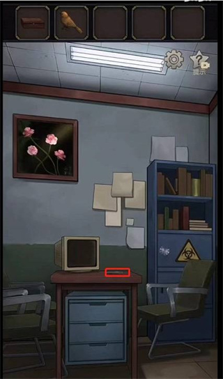 28、点击后面上面的密码柜,将之前在地上拿到的钢铁小鸟放上去。