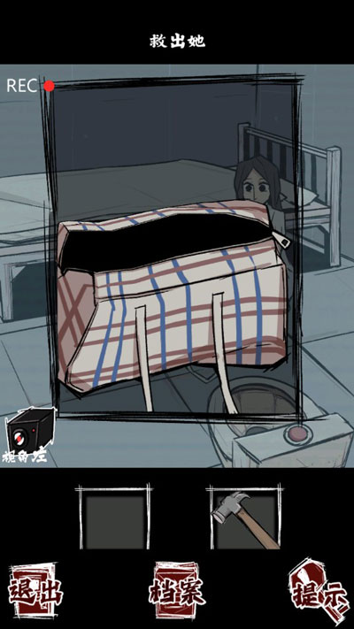 5、可以看到床底下有个袋子,拿出来打开收集里面的铁锤