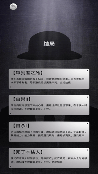 唐纪未用麻痹能力救下纪年,导致游戏提前结束。审判者死亡:未救下审判者,导致游戏后续无法审判,游戏结束