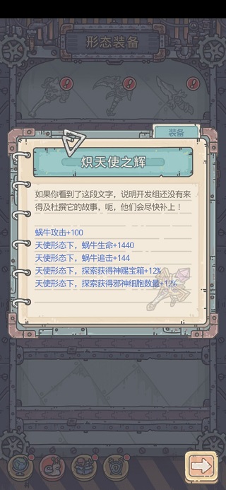 5.蚊子再小都是肉,除了上述这些,最好紧跟版本,也就是peter的信,光子服的玩家应该都知道,之前觉醒改版送了不少卷轴,还有再之前得10K白蝌蚪,导致很多氪金玩家抱怨,不过我是没赶上,就目前情况而言,因神赐宝箱要改版,天使形态改版后不会获取神赐宝箱,而此宝箱以后也是装备的重要来源,所以建议装备的第一优先就是终极天使仗(做不出来还是恶魔推图吧),平时多积攒神赐宝箱和探索加速,能推图打败各国的最终使徒之后,可以换形态和装备推一波,开博物馆。