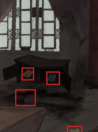 4、进入房间之后,可以在整个房间当中可以找到三分文件。点击地上烧焦的痕迹可以得到线索,在这里将要进行丁妙妙的态度,如图将线索放上。