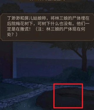 18、接着前往梅花坊的后院,来到这里点击后院进行对话,点开坟包之后就可以得到林三娘的墓是空的。