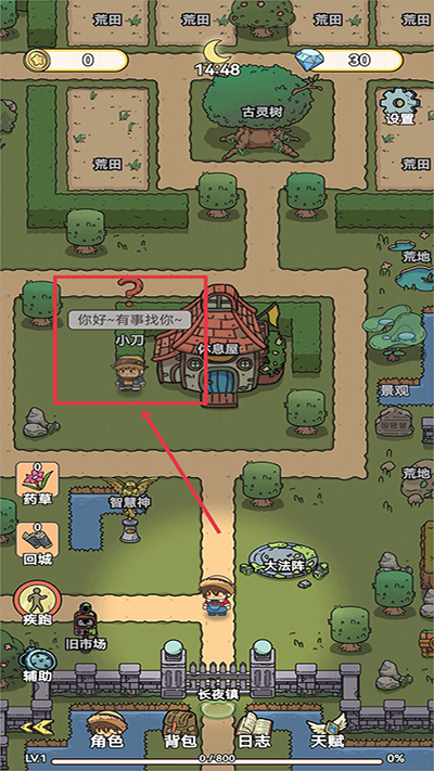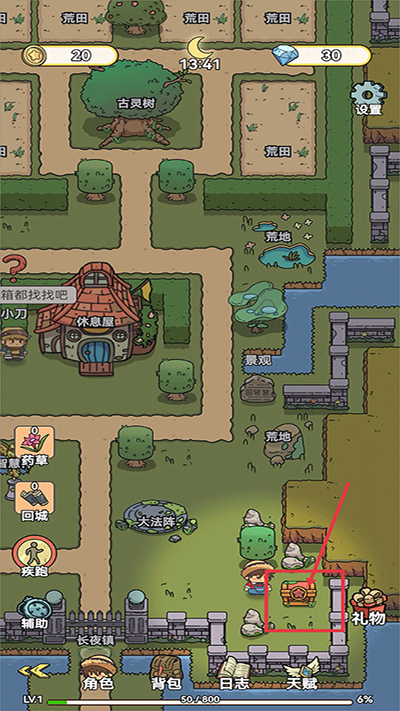 开局先拾取艾族长上方的宝箱,内含1000金币和30钻石等物资,之后与艾族长对话接受任务。这些任务主要演示基础操作流程,艾人中的老玩家可以快速完成。