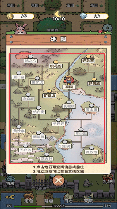 6、解锁传送阵可以获取到地图,点击地区名称后可以快速传送至其他区域。