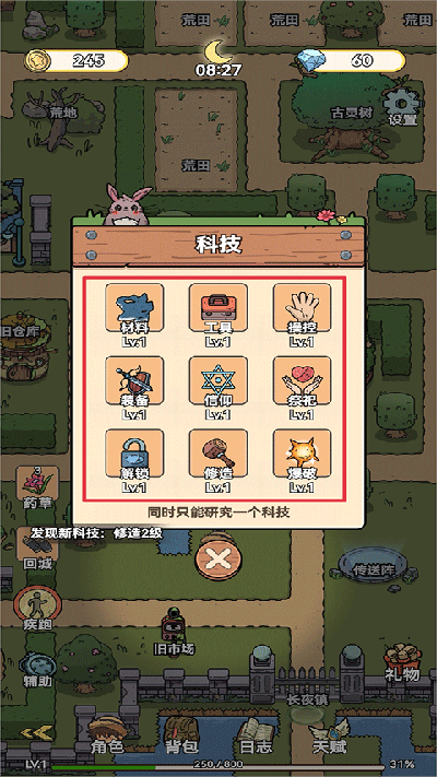 9、在智慧神处可以进行各种科技的升级,升级科技同样需要消耗材料,并且同时只能研究一个科技。
