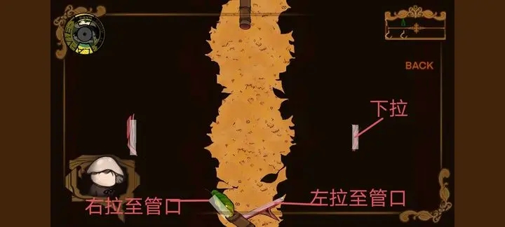 按图示操作控制叶片,使水滴顺利流进管道。后续皆是按图操作即可。