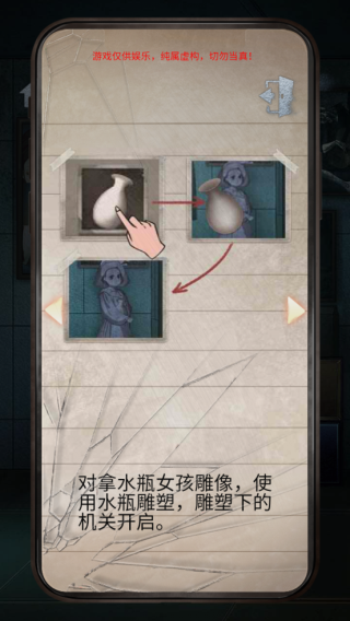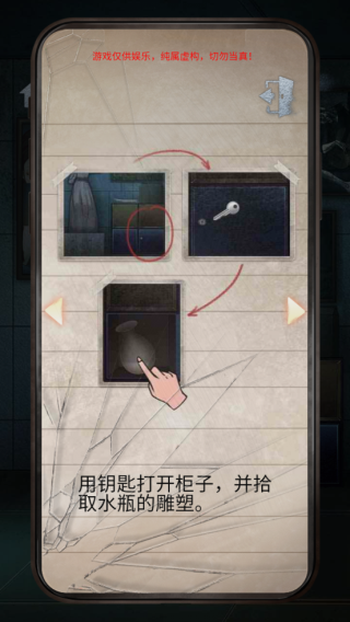 4、用钥匙打开第一个场景中上锁的柜子,取出水瓶雕塑
