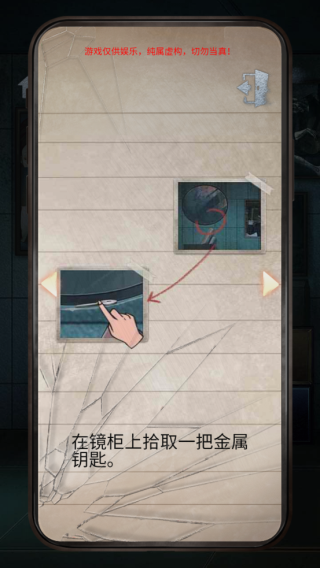 3、点击第二场景的镜子,拿取钥匙