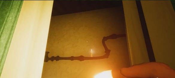 继续直走,在尽头有一个人偶旁边可以拿到手电筒,继续到尽头的屋子,屋子内有个铁栏门无法打开,旁边有个发动机,但是去发动机的门在漏电。