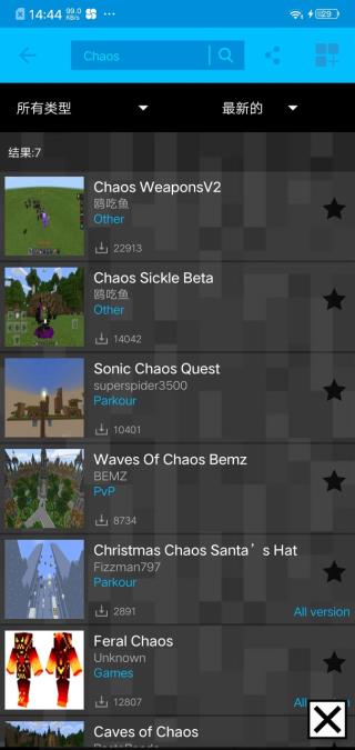 4、如果混沌模组没有用就把它的资源包和行为包放到最上面。你学会了吗?第一张图是混沌模组搜在这个软件里搜索Chaos第一个。