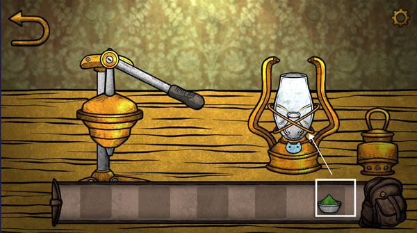 7、将玫瑰花给女人,进入嘴巴,白框处拿到一个蚕蛹,将蚕蛹放到机器里,使用机器获得绿色燃料,将燃料放入右边的灯具里,获得发光的灯