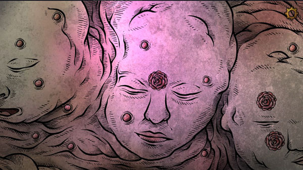 8、从嘴巴里出来一直往右走,和三个女人头对话后向右走到电梯那,进电梯前往标本馆