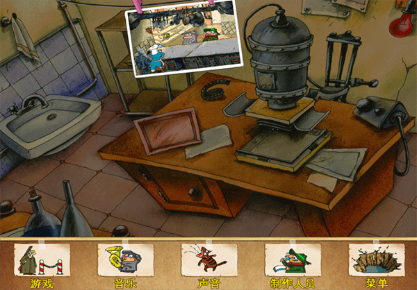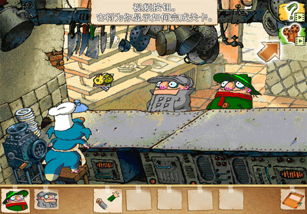 2、过关要点:拉下窗帘,把老鼠放在投影仪上,然后点击投影仪器会根据一定顺序切换头、身体、腿三个不同部位,而难点在于飞弟“捣乱”行为,其实掌握好兄弟二人的规律还是十分简单的,飞哥更换头部,则飞弟会更换身体,飞哥更换身体则飞弟会更换腿部,以此类推,而单独用飞弟切换则是查看下一个部位的功能,掌握以上规律就可以了,这个说一下凶手是拿着刀叉的蓝色家伙。