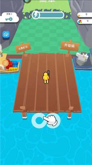 1、下载并打开游戏,进入首界面以后就可以开始采矿之旅了如图所示,滑动屏幕即可进行移动