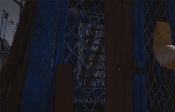 8、出来到院子内,绕道后面用扳手打开蓝色铁栅栏,里面有个梯子。