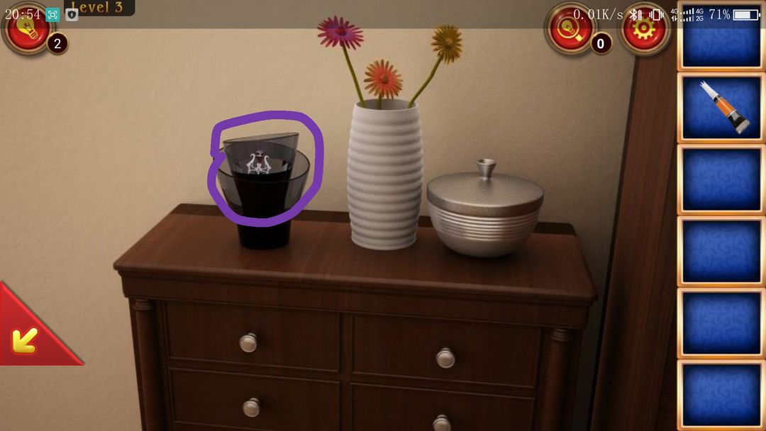 点击①处,得到梳妆台上的剪刀和盒子后面的胶水