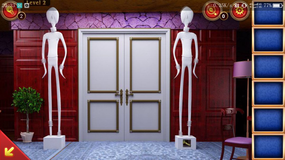 点击⑥处,将白色方块放在左边雕像下,从右边雕像下面得到一把钥匙