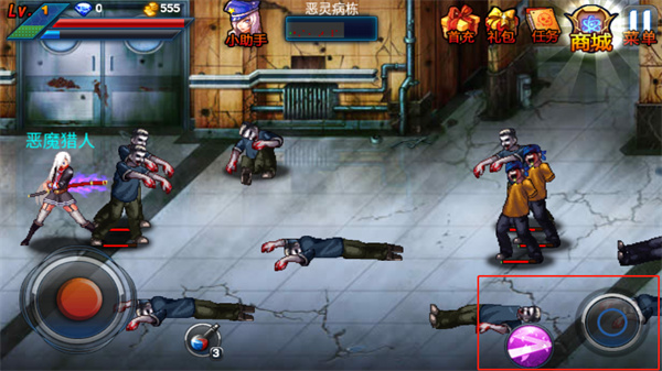 6、右边的是技能建,玩家可以通过点击来进行攻击;