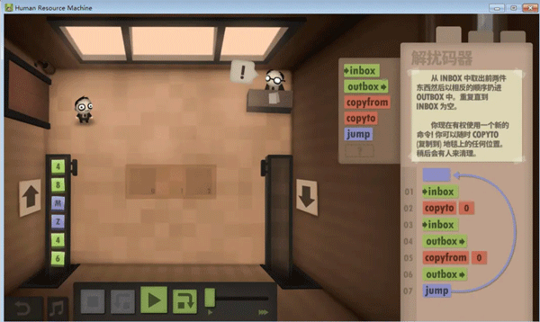 在这里,如果你想要向更高的职位攀爬,当然和自身不懈努力分不开。完成Boss给的每项工作,不仅需要足够耐心的不断斟酌代码逻辑,还要反复检测所编程序的准确性,读取、输出、跳转、循环...通过调整一条条程序代码,最终让程序完美运行。