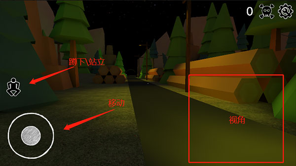 6、屏幕左边控制角色移动,右边控制视角方向,此外左边还有蹲下和站立按钮,右上角显示