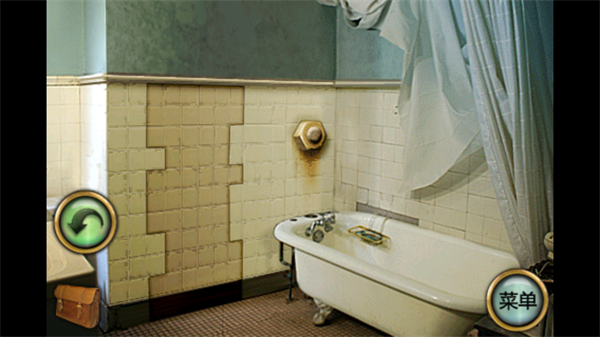 5、进入第三个房间,这里是一个浴室,有一个大号螺母(需要扳手),浴缸中的水可以打开,不过会流走(需要塞子)。