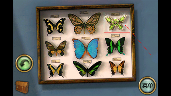 点击蝴蝶标本,拿出右上角的假蝴蝶,一个宝石饰品。