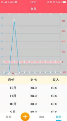 该应用提供了多种方式统计、分析用户的财务数据,例如每月收入、支出、结余、消费品类等数据。