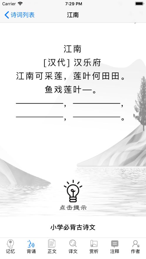 小学古诗词APP官方手机版,是一款充满趣味的古诗学习软件。它涵盖了中小学各年级必学的古诗内容,每一篇诗词都配有详细的解析与注释,助力大家完成翻译、加深理解,进而掌握诗词的核心意思。此外,软件还设置了多样化的练习模式,帮助提升记忆力,让学习过程轻松无压力,为孩子们奠定良好的学习基础,作用十分显著。其采用更为科学化的教学方式,能迅速提升孩子们的诗词学习能力,对孩子们的个人成长大有益处。