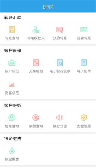 在金融圈中的“理财”可以进行转账汇款、账户管理、客户服务、银企缴费等;