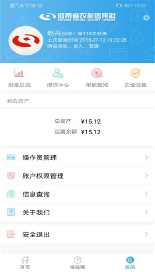 在我的中可以进行财富总览,授权中心、限额查询、安全设置等一系列操作。