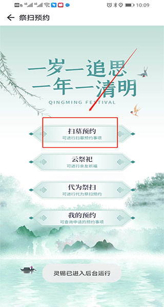 2、然后进入,点击“扫墓预约”(如下图所示);