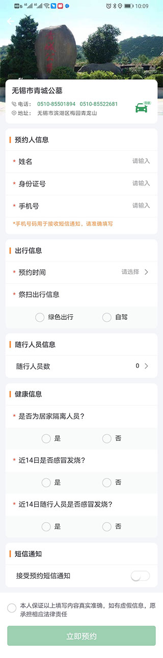4、然后进入,完善预约信息,点击“立即预约”(如下图所示);