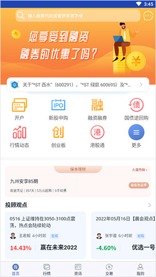 这款由九州证券股份有限公司倾力打造的股票投资软件,基于国内领先的智能行情推送技术,并融合了移动互联网技术的便捷优势。软件全面提供实时行情、在线交易和资讯研究三大板块,不仅能够为用户提供涉及深沪港高速行情、基金、债券、权证、期指、外盘等实时市场行情的及时推送,帮助用户在股市波动中迅速把握机会,还能够提供最新的新闻资讯和理财信息,助力用户在股市中更加得心应手,轻松实现财富增值。此外,九州大智慧APP界面简洁清爽,功能直观易懂,操作简便,非常适合新手快速上手。如果您需要这样一款投资软件,相信它会成为您的得力助手!赶快下载体验吧!