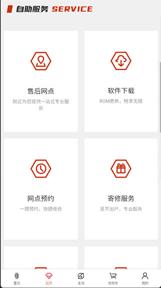 点击服务,即可查看各种售后服务,包含售后网点即rom下载等自助服务;