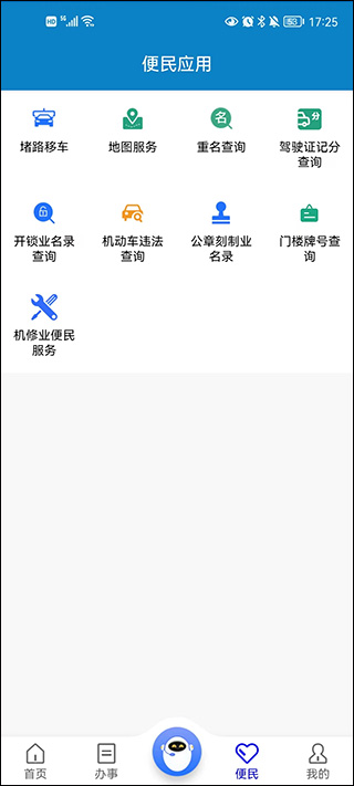 在便民服务专区中不仅提供了堵路移车功能,还支持查询驾驶证记分功能。