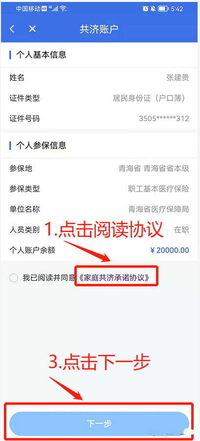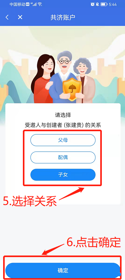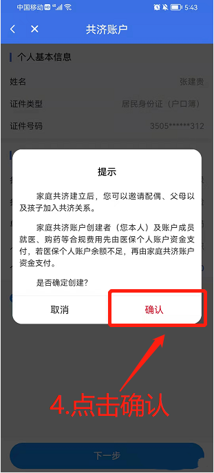 点击“下一步”确认是否创建家庭共济账户