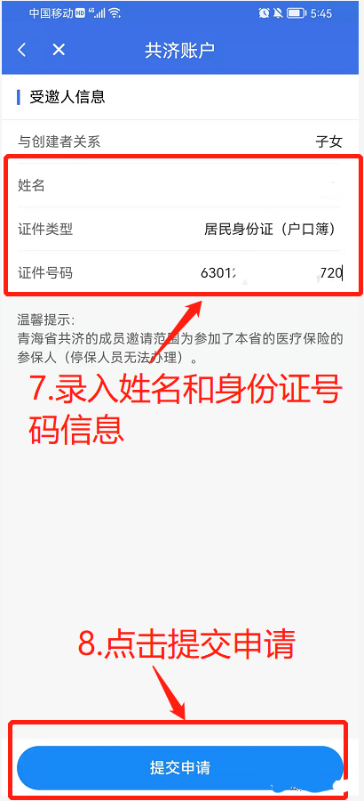 创建人可邀请父母、子女作为被共济人,父母、子女必须参加青海省城镇职工或城乡居民基本医疗保险。创建人、被共济人须下载青海医保APP,并激活医保电子凭证,儿童可以直接进行绑定。