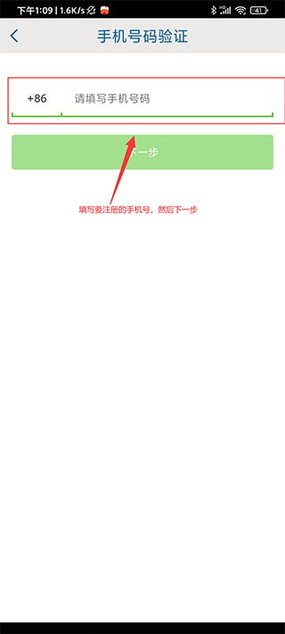 4、输入个人手机号,点击“点击下一步”进入短信验证界面;