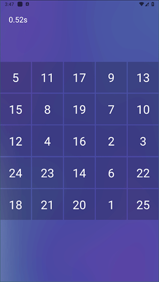 3、点击开始后,左上角开始计时,你需要在最短的时间内从小到大点击所有的数字;